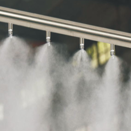 1) 霧 細:高壓噴霧噴嘴每秒能產生50億個霧滴,霧滴的直徑僅為5~30μm, 抑塵效果佳。使用噴霧系統(tǒng)時其目的在于使噴霧系統(tǒng)制造的霧顆粒未接觸到地面以前就能夠蒸發(fā),能達到此目的的方法是將霧顆粒變?yōu)橛∮谩lF顆粒越小,就霧顆粒的數量而言,霧顆粒的表面積愈大,結果霧顆粒蒸發(fā)率愈高,所能達到的 抑塵效果愈好。