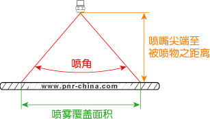 噴霧角度與噴霧高度(噴嘴口至被噴物之距離)關(guān)系著噴霧覆蓋面積的大小。